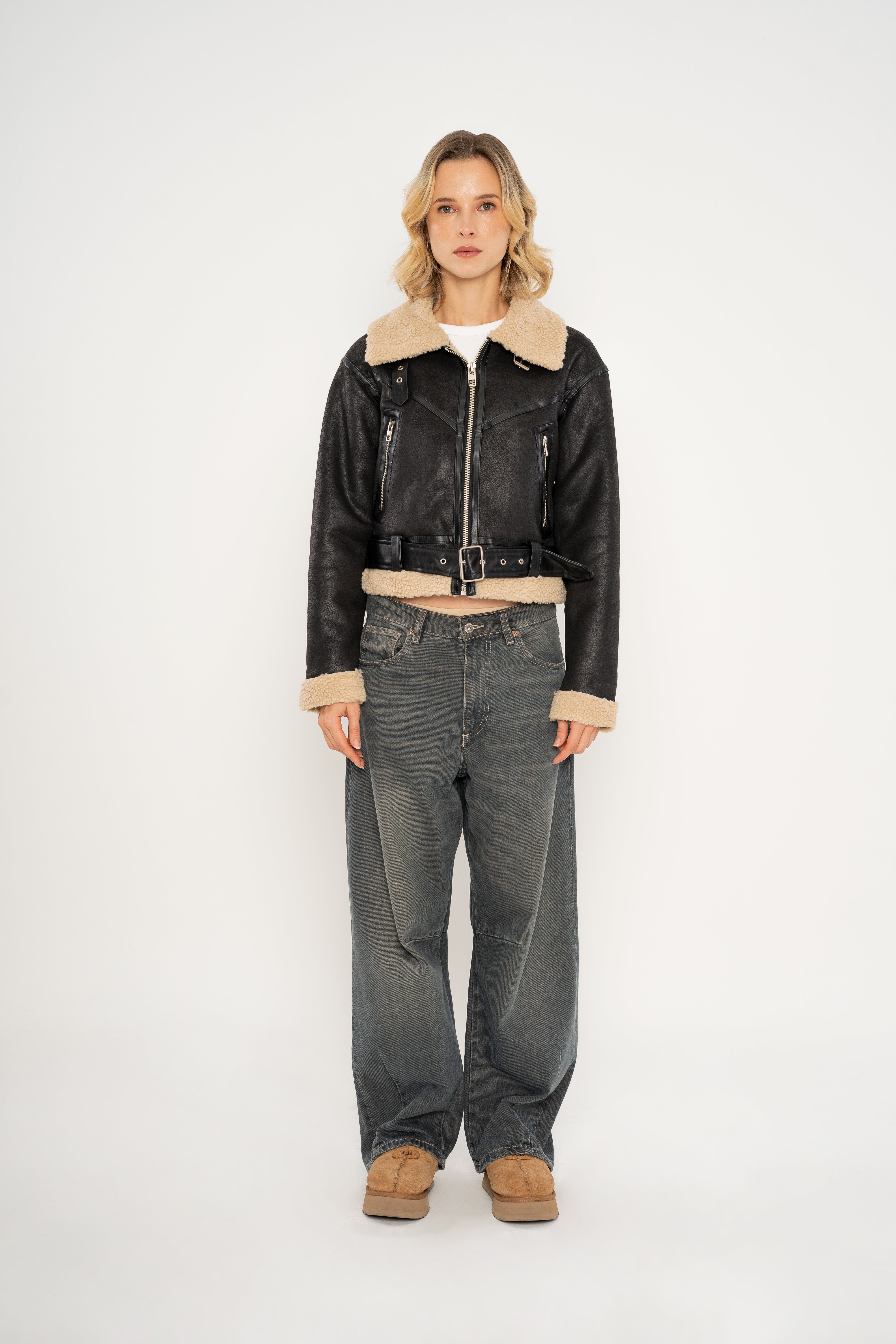 Chaqueta Mujer Rusted Cuerina y Borrego
